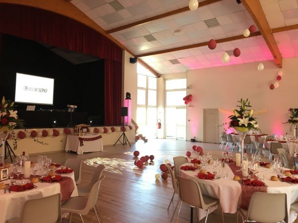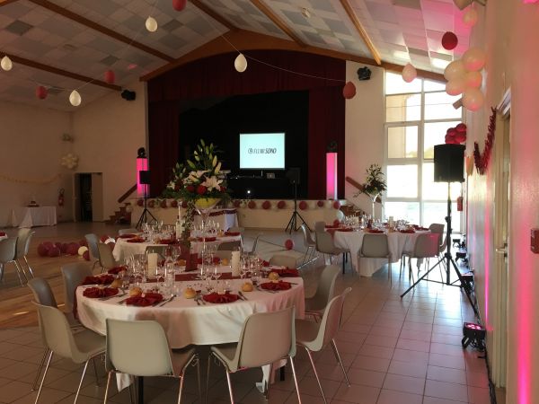 Nous avons propossons aux mariés la sonorisation du cocktail, du repas et de la soirée dansante. Une mise en lumière de la salle de réception à également était faites.